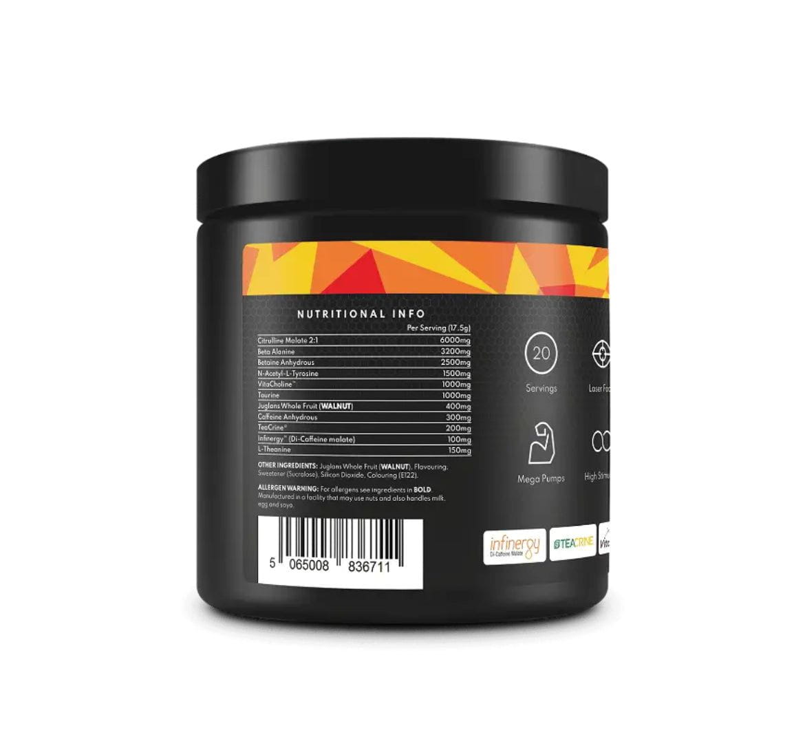 - TeaCrine®: 200mg for long-lasting, jitter-free energy.