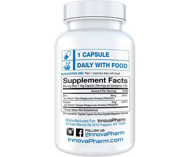 InnovaPharm Zinc Chelate + Copper Chelate - 120 Veg Capsules
